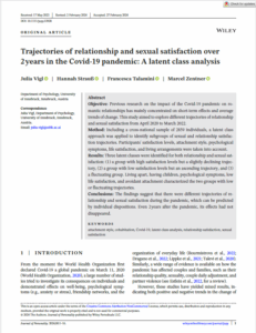 In this article, we extended the research period by another year (April 2020-March 2022) and were able to identify different classes of change patterns in relationship and sexual satisfaction during the pandemic. In addition to providing information on what proportion of the sample followed the different change trajectories during the pandemic, we were able to highlight predictors of class membership as well as predictors of breakups.
